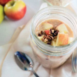 These thick, creamy, and heart-healthy overnight oats are a great make-ahead breakfast option. With the warmth of cinnamon and sweet apples, they make a perfect start to your day. In addition, they’re made with ingredients you probably already have in your pantry.