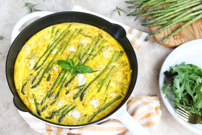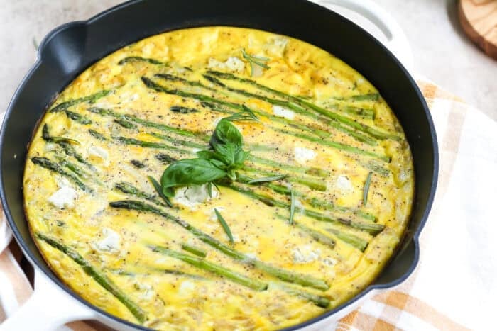 Meet your new go-to: this Asparagus and Goat Cheese Frittata! Whether it’s a busy weekday morning, an impromptu brunch, or a light dinner when you can’t deal with complicated recipes, this frittata has your back.