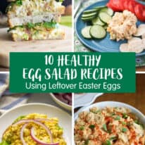 In need of some different recipes to use up some hard-boiled eggs? Try these Healthy Egg Salad Recipes Using Leftover Easter Eggs! These egg salad recipes have some fun spins on the classic and of course, we offer some healthier versions, too!