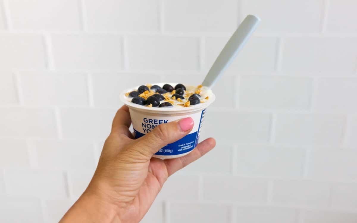 The key to breakfast on the go is being able to keep it simple, like yogurt with blueberries. All you need are your favorite single serving yogurt cup, and some fresh blueberries. Put a handful of blueberries and even a little granola if you like some crunch on top of your yogurt and breakfast is ready!