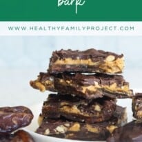 You heard me, Date Bark! Think of it as the classier, adult cousin of those chocolate-covered peanut butter bars we all love, but with a wholesome twist. This recipe brings together gooey dates, creamy peanut butter, crunchy peanuts, and dark chocolate for a sweet treat or snack that tastes sinful without any of the actual sins. Oh, and did I mention you can make it in just ten minutes with only six ingredients? Yeah, it’s a holiday miracle!