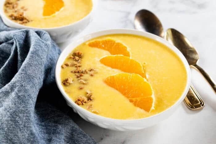 If you’ve got kids who love dessert for breakfast, this is your secret weapon. Greek yogurt adds protein and probiotics, while oranges pack in vitamin C. Sprinkle on granola, chia seeds, or hemp hearts for crunch and extra staying power.