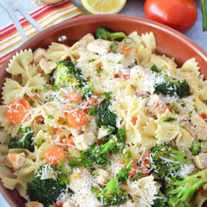 Thank you! This recipe answers the question “What do I do with chicken, pasta and veggies for dinner tonight?” With just a few changes I can make a healthy, delicious and easy dinner tonight!